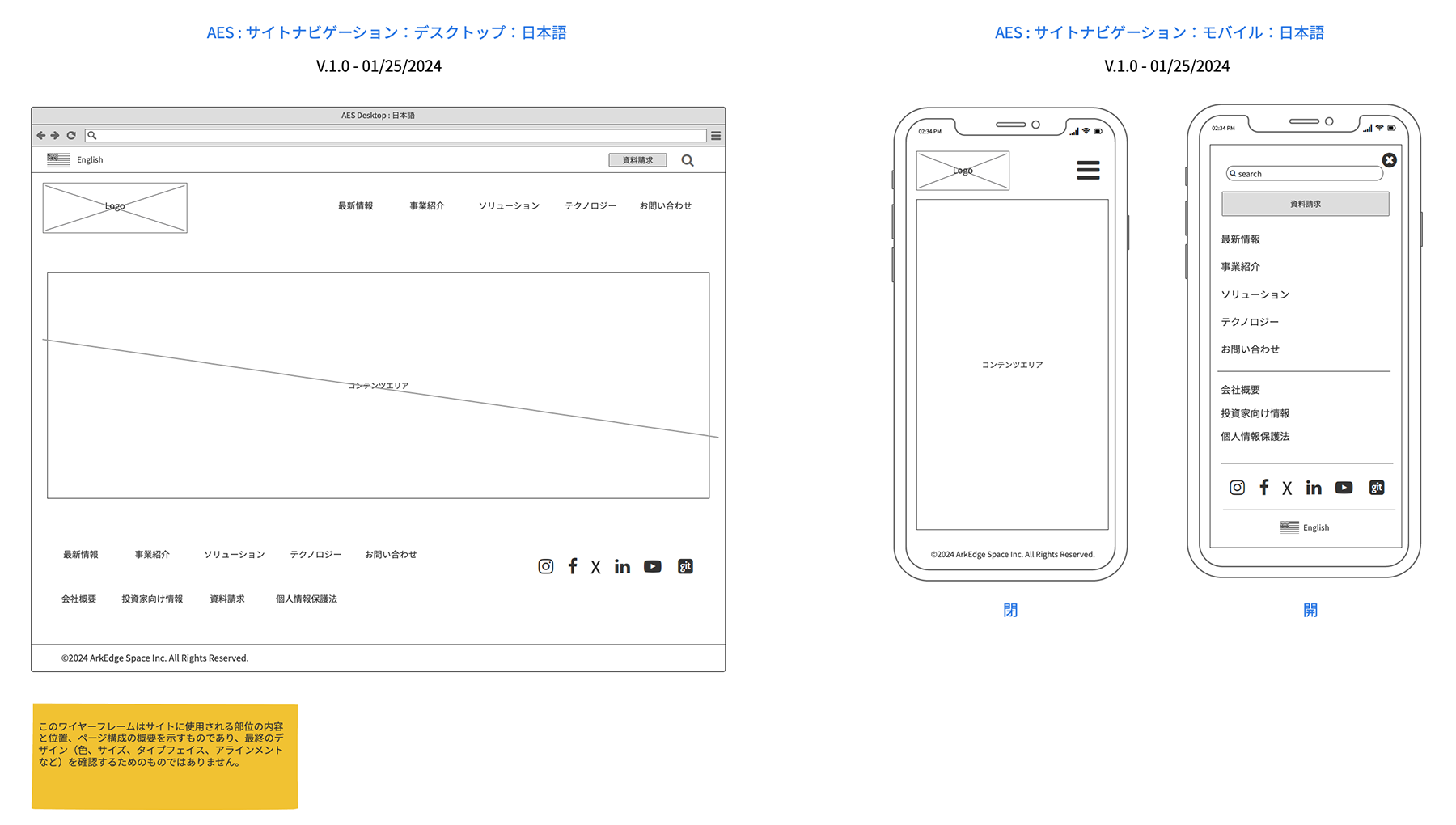ナビゲーションのワイヤーフレーム