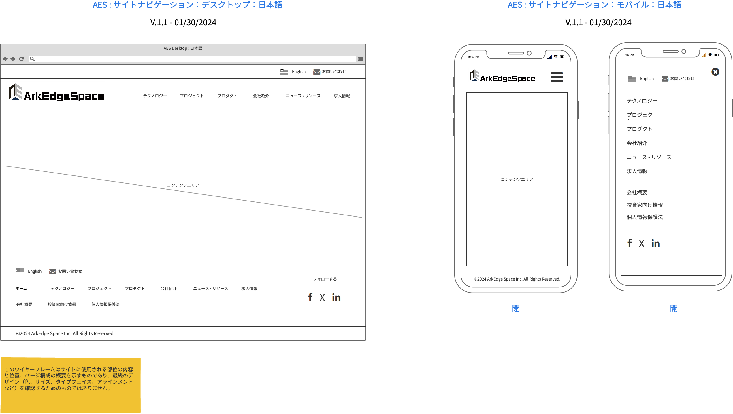 ナビゲーションのワイヤーフレーム